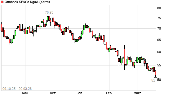 Mit dem Rücksetzer auf 51,75 EUR hat die Ottobock-Aktie (ISIN DE000BCK2223) am 19.03.2026 ein neues All-Time-Low erreicht und damit den Kurs vom 17.03.2026 eingestellt.