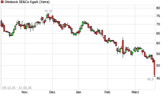 Mit dem Rücksetzer auf 46,80 EUR hat die Ottobock-Aktie (ISIN DE000BCK2223) am 20.03.2026 ein neues All-Time-Low erreicht und damit den Kurs vom 19.03.2026 eingestellt.