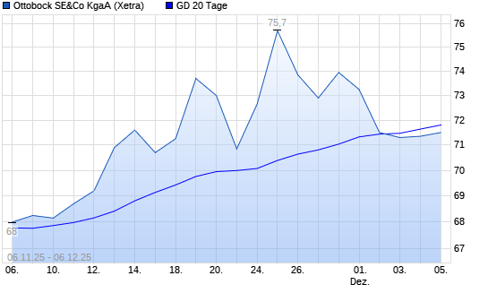 Mit dem Rücksetzer auf 71,55 EUR hat die Ottobock-Aktie am 05.12.2025 die 20-Tage-Linie nach unten gekreuzt.