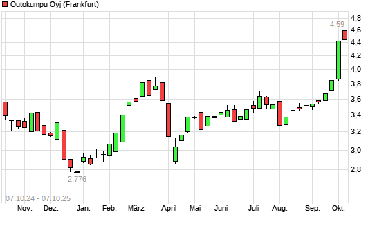 Mit dem Anstieg auf 4,54 EUR hat die Outokumpu-Aktie (ISIN FI0009002422) am 06.10.2025 ein neues 12-Monats-Hoch erreicht und damit den Kurs vom 03.10.2025 eingestellt.