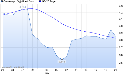 Mit dem Anstieg auf 3,94 EUR hat die Outokumpu-Aktie am 20.11.2025 die 20-Tage-Linie nach oben gekreuzt.