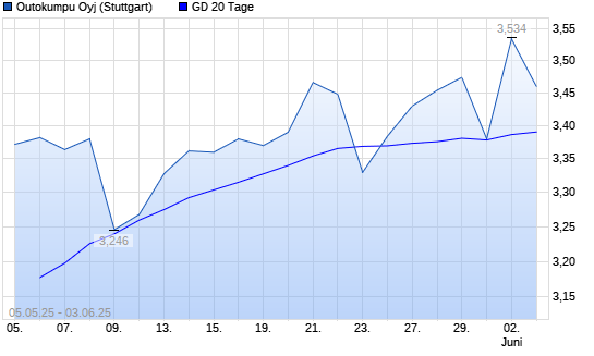 Mit dem Rücksetzer auf 3,37 EUR hat die Outokumpu-Aktie am 02.06.2025 die 20-Tage-Linie nach unten gekreuzt.
