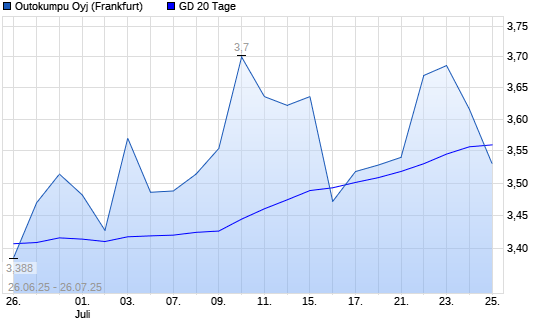 Mit dem Rücksetzer auf 3,53 EUR hat die Outokumpu-Aktie am 25.07.2025 die 20-Tage-Linie nach unten gekreuzt.