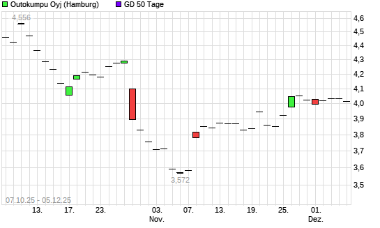 Mit dem Rücksetzer auf 4,01 EUR hat die Outokumpu-Aktie am 04.12.2025 die 50-Tage-Linie nach unten gekreuzt.