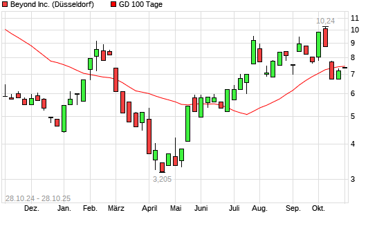 Mit dem Anstieg auf 7,34 EUR hat die Overstock.com-Aktie am 27.10.2025 die 100-Tage-Linie nach oben gekreuzt.