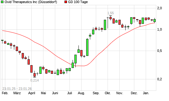 Mit dem Anstieg auf 1,36 EUR hat die Ovid Therapeutics-Aktie am 22.01.2026 die 100-Tage-Linie nach oben gekreuzt.