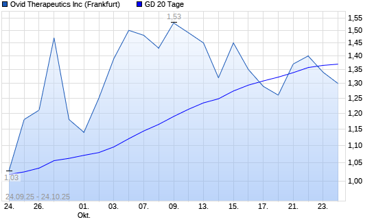 Mit dem Rücksetzer auf 1,34 EUR hat die Ovid Therapeutics-Aktie am 23.10.2025 die 20-Tage-Linie nach unten gekreuzt.