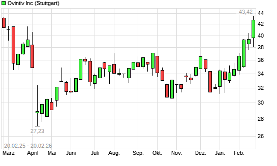 Mit dem Anstieg auf 41,82 EUR hat die Ovintiv-Aktie (ISIN US69047Q1022) am 19.02.2026 ein neues 6-Monats-Hoch erreicht und damit den Kurs vom 18.02.2026 eingestellt.