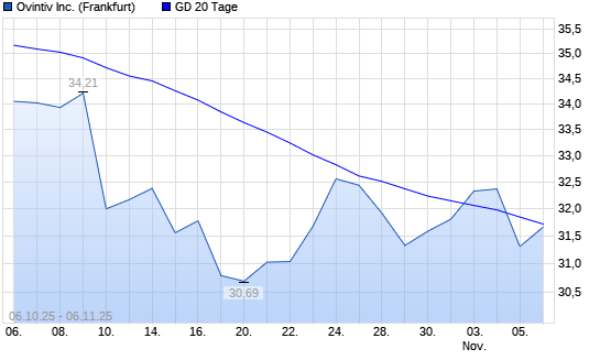 Mit dem Rücksetzer auf 31,31 EUR hat die Ovintiv-Aktie am 05.11.2025 die 20-Tage-Linie nach unten gekreuzt.