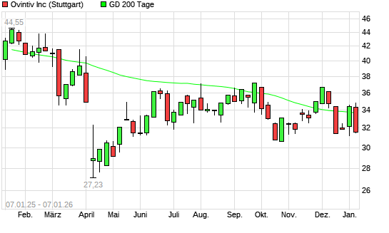 Mit dem Rücksetzer auf 32,75 EUR hat die Ovintiv-Aktie am 06.01.2026 die 200-Tage-Linie nach unten gekreuzt.