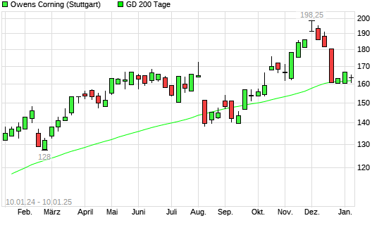 Mit dem Anstieg auf 164,95 EUR hat die Owens Corning-Aktie am 09.01.2025 die 200-Tage-Linie nach oben gekreuzt.