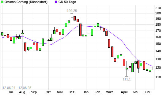 Mit dem Anstieg auf 124,50 EUR hat die Owens Corning-Aktie am 11.06.2025 die 50-Tage-Linie nach oben gekreuzt.