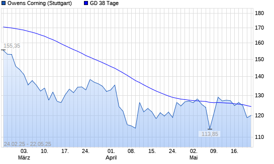 Mit dem Rücksetzer auf 120,10 EUR hat die Owens Corning-Aktie am 21.05.2025 die 38-Tage-Linie nach unten gekreuzt.