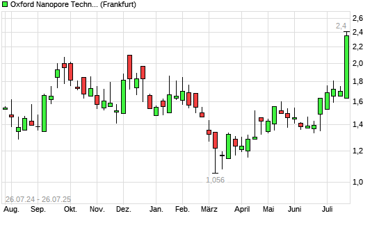 Mit dem Anstieg auf 2,35 EUR hat die Oxford Nanopore Technologies-Aktie (ISIN GB00BP6S8Z30) am 25.07.2025 ein neues 12-Monats-Hoch erreicht und damit den Kurs vom 24.07.2025 eingestellt.