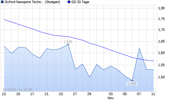 Mit dem Rücksetzer auf 1,55 EUR hat die Oxford Nanopore Technologies-Aktie am 10.11.2025 die 20-Tage-Linie nach unten gekreuzt.