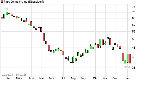 Mit dem Rücksetzer auf 36,20 EUR hat die PAPA JOHNS International-Aktie (ISIN US6988131024) am 09.01.2025 ein neues 3-Jahres-Tief erreicht und damit den Kurs vom 08.01.2025 eingestellt.