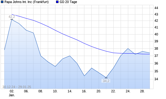 Mit dem Anstieg auf 37,60 EUR hat die PAPA JOHNS International-Aktie am 28.01.2025 die 20-Tage-Linie nach oben gekreuzt.