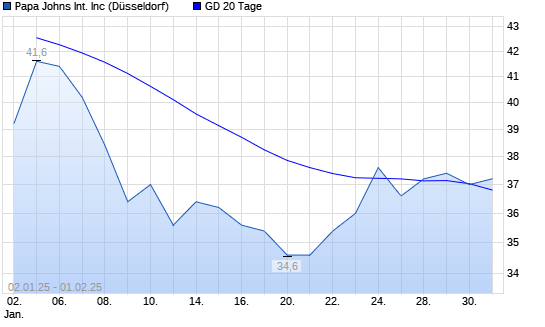 Mit dem Anstieg auf 37,60 EUR hat die PAPA JOHNS International-Aktie am 31.01.2025 die 20-Tage-Linie nach oben gekreuzt.