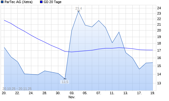 Mit dem Anstieg auf 17,50 EUR hat die PARTEC AG VNA O.N.-Aktie am 19.11.2025 die 20-Tage-Linie nach oben gekreuzt.