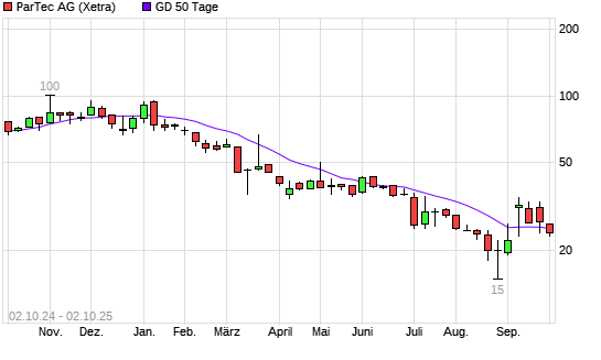 Mit dem Rücksetzer auf 22,70 EUR hat die PARTEC AG VNA O.N.-Aktie am 01.10.2025 die 50-Tage-Linie nach unten gekreuzt.