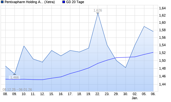 Mit dem Anstieg auf 1,55 EUR hat die PENTIXAPHARM Holding O.N.-Aktie am 05.01.2026 die 20-Tage-Linie nach oben gekreuzt.
