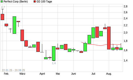 Mit dem Rücksetzer auf 1,62 EUR hat die PERFECT CL.A-Aktie am 19.08.2025 die 100-Tage-Linie nach unten gekreuzt.