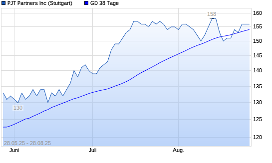 Mit dem Anstieg auf 156,00 EUR hat die PJT Partners-Aktie am 27.08.2025 die 38-Tage-Linie nach oben gekreuzt.