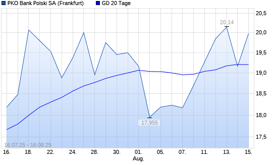 Mit dem Anstieg auf 19,98 EUR hat die PKO Bank Polski-Aktie am 15.08.2025 die 20-Tage-Linie nach oben gekreuzt.