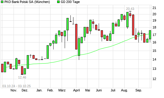 Mit dem Anstieg auf 17,60 EUR hat die PKO Bank Polski-Aktie am 02.10.2025 die 200-Tage-Linie nach oben gekreuzt.