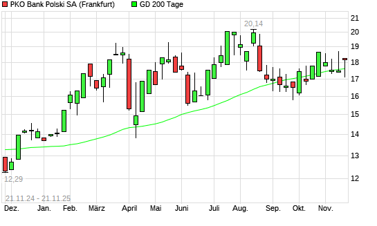Mit dem Anstieg auf 17,85 EUR hat die PKO Bank Polski-Aktie am 20.11.2025 die 200-Tage-Linie nach oben gekreuzt.