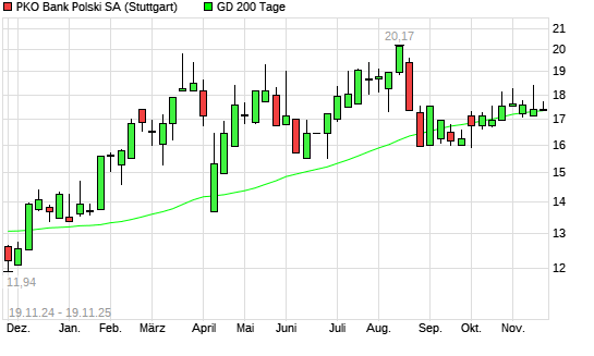 Mit dem Rücksetzer auf 17,24 EUR hat die PKO Bank Polski-Aktie am 18.11.2025 die 200-Tage-Linie nach unten gekreuzt.