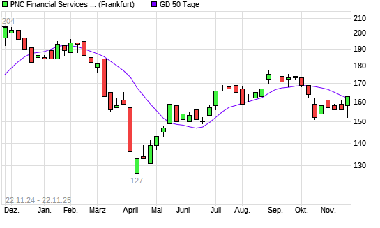 Mit dem Anstieg auf 163,00 EUR hat die PNC Financial Services-Aktie am 21.11.2025 die 50-Tage-Linie nach oben gekreuzt.