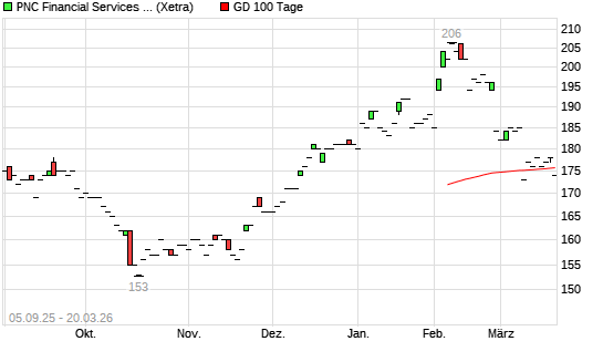 Mit dem Rücksetzer auf 172,00 EUR hat die PNC Financial Services-Aktie am 19.03.2026 die 100-Tage-Linie nach unten gekreuzt.