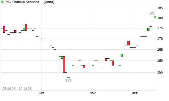 Mit dem Anstieg auf 179,00 EUR hat die PNC Financial Services-Aktie (ISIN US6934751057) am 12.12.2025 ein neues 6-Monats-Hoch erreicht und damit den Kurs vom 11.12.2025 eingestellt.Die ...weiterlesen