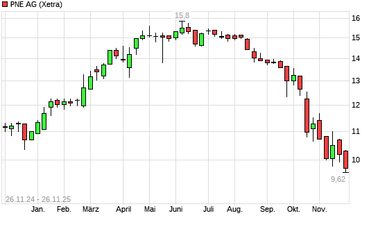 Mit dem Rücksetzer auf 10,02 EUR hat die PNE Wind-Aktie (ISIN DE000A0JBPG2) am 25.11.2025 ein neues 3-Jahres-Tief erreicht und damit den Kurs vom 05.11.2025 eingestellt.