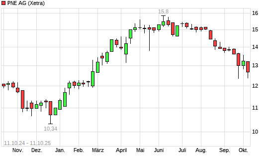 Mit dem Rücksetzer auf 12,62 EUR hat die PNE Wind-Aktie (ISIN DE000A0JBPG2) am 10.10.2025 ein neues 6-Monats-Tief erreicht und damit den Kurs vom 23.09.2025 eingestellt.