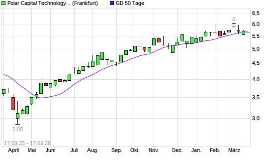 Mit dem Rücksetzer auf 5,65 EUR hat die POLAR CAP.T.-Aktie am 16.03.2026 die 50-Tage-Linie nach unten gekreuzt.