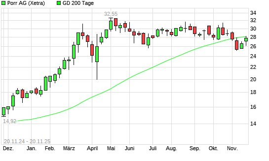 Mit dem Anstieg auf 28,70 EUR hat die PORR-Aktie am 19.11.2025 die 200-Tage-Linie nach oben gekreuzt.