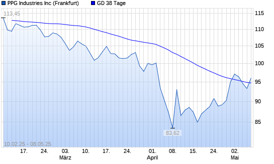 Mit dem Rücksetzer auf 93,26 EUR hat die PPG Industries-Aktie am 07.05.2025 die 38-Tage-Linie nach unten gekreuzt.