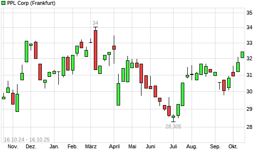 Mit dem Anstieg auf 32,43 EUR hat die PPL-Aktie (ISIN US69351T1060) am 15.10.2025 ein neues 6-Monats-Hoch erreicht und damit den Kurs vom 23.04.2025 eingestellt.