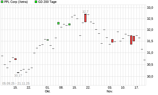 Mit dem Rücksetzer auf 30,73 EUR hat die PPL-Aktie am 20.11.2025 die 200-Tage-Linie nach unten gekreuzt.