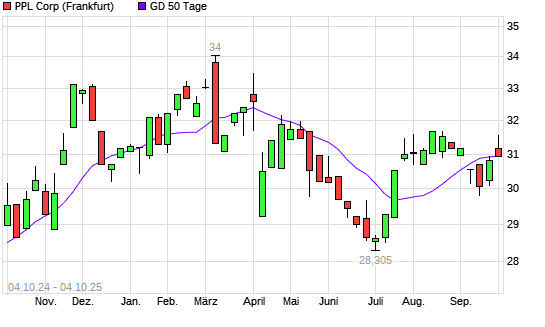 Mit dem Rücksetzer auf 30,94 EUR hat die PPL-Aktie am 03.10.2025 die 50-Tage-Linie nach unten gekreuzt.