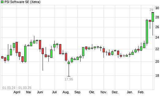 Mit dem Anstieg auf 27,80 EUR hat die PSI Software-Aktie (ISIN DE000A0Z1JH9) am 28.02.2025 ein neues 12-Monats-Hoch erreicht und damit den Kurs vom 13.02.2025 eingestellt.