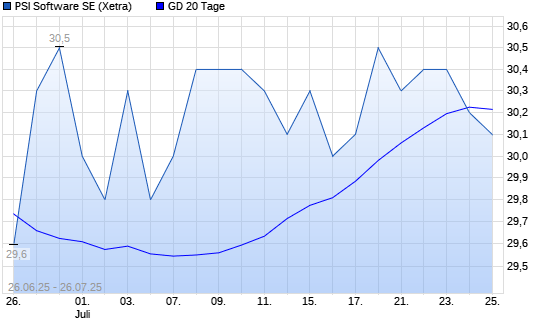 Mit dem Rücksetzer auf 30,10 EUR hat die PSI Software-Aktie am 25.07.2025 die 20-Tage-Linie nach unten gekreuzt.