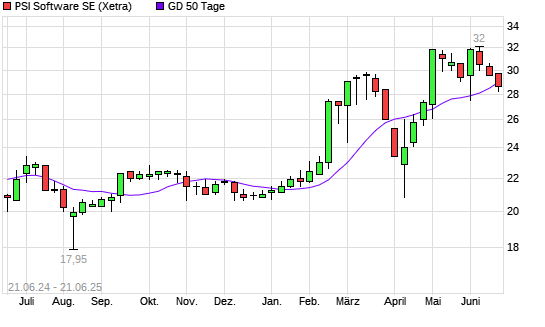Mit dem Rücksetzer auf 28,70 EUR hat die PSI Software-Aktie am 20.06.2025 die 50-Tage-Linie nach unten gekreuzt.