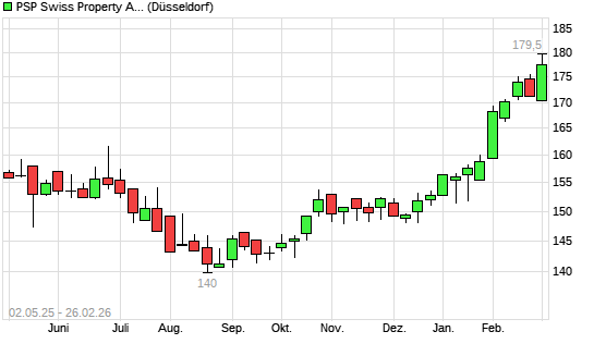 Mit dem Anstieg auf 179,50 EUR hat die PSP Swiss Property-Aktie (ISIN CH0018294154) am 25.02.2026 ein neues All-Time-High erreicht und damit den Kurs vom 17.02.2026 eingestellt.