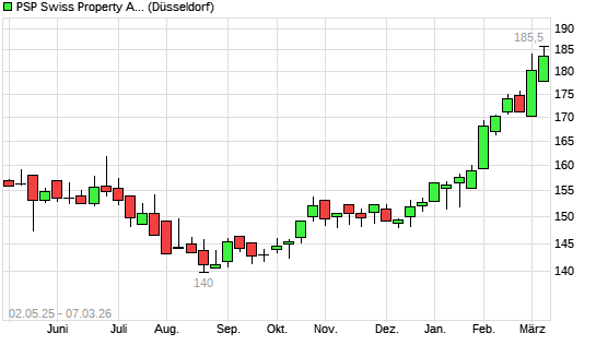 Mit dem Anstieg auf 183,60 EUR hat die PSP Swiss Property-Aktie (ISIN CH0018294154) am 06.03.2026 ein neues All-Time-High erreicht und damit den Kurs vom 05.03.2026 eingestellt.