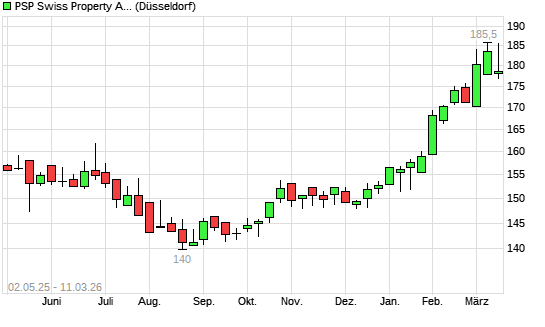 Mit dem Anstieg auf 185,20 EUR hat die PSP Swiss Property-Aktie (ISIN CH0018294154) am 10.03.2026 ein neues All-Time-High erreicht und damit den Kurs vom 06.03.2026 eingestellt.