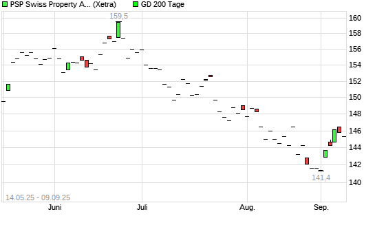 Mit dem Anstieg auf 146,40 EUR hat die PSP Swiss Property-Aktie am 08.09.2025 die 200-Tage-Linie nach oben gekreuzt.