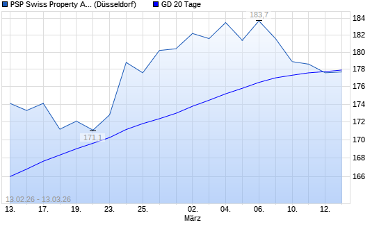 Mit dem Rücksetzer auf 177,10 EUR hat die PSP Swiss Property-Aktie am 12.03.2026 die 20-Tage-Linie nach unten gekreuzt.